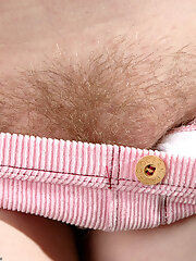 Hairy woman Emily Marshall is the perfect model for this lingerie. She enjoys teasing the camera with her slow striptease. She eases her clothing off, showing the lingerie. She also shows her pussy.