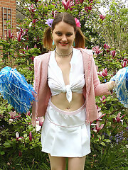 Chubby cheerleader with hairy twat poses outdoor