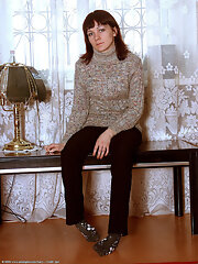 Chubby retro girl takes off clothes and shows her hairy cunt