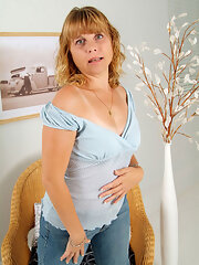 Smalltitted blonde mature babe undresses and fingers pussy
