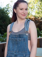 Annabelle Lee takes off her overalls and flashes those perky breasts